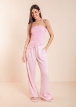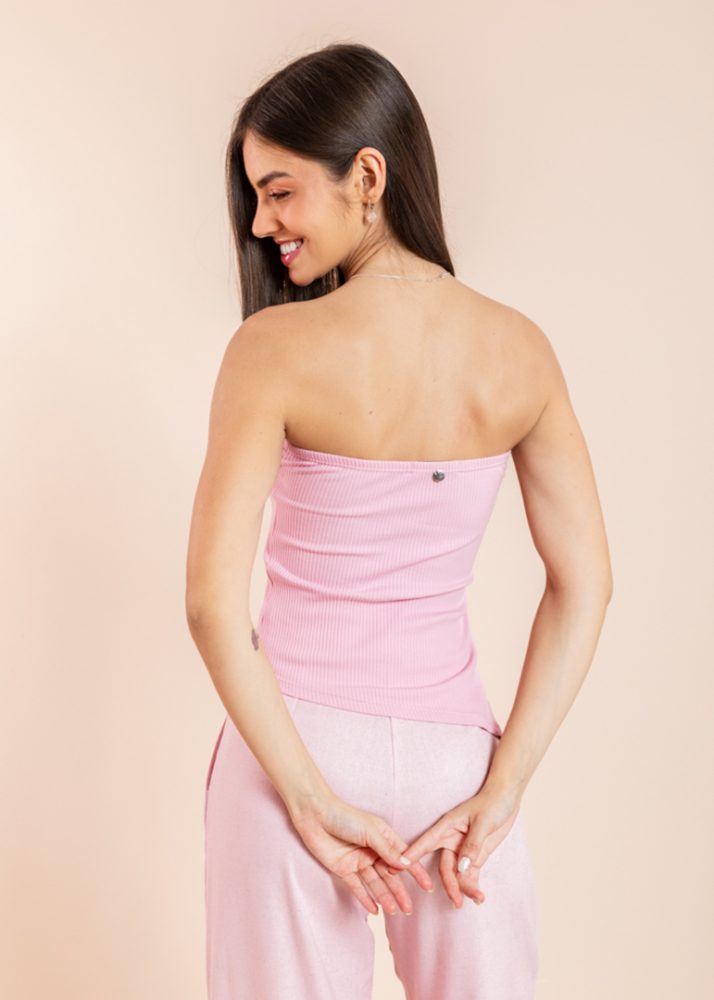 Blusa sem alça com decote estilo ‘’tomara que caia’’ e modelagem assimétrica com fenda lateral. Confeccionada em malha canelada 93%algodão 7%elastano com textura delicada que proporciona toque macio e sofisticado à peça.