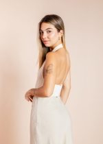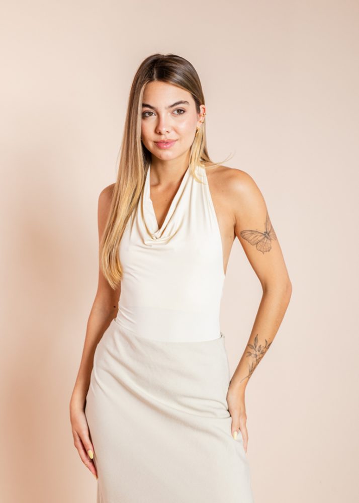 Blusa Poliamida Frente Única Gola Boba Rebeca Creme Pkd