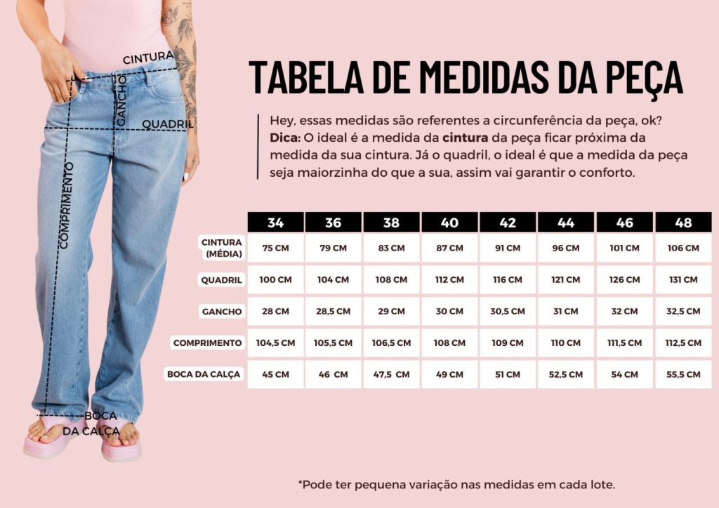 A Catarina é aquele jeans que com modelagem over e cintura baixa, ela entrega um caimento soltinho, moderno e super confortável. O jeans claro dá um ar fresh e urbano, perfeito para quem gosta de peças versáteis que acompanham diferentes estilos. É a calça ideal para criar combinações infinitas: use com body e tênis para um visual descontraído, com camisa e salto para um look mais sofisticado, ou até com blazer oversized para apostar no streetwear. Além de estilosa, a Catarina tem aquele fit que valoriza sem marcar, deixando o movimento livre e o visual cheio de personalidade. Uma peça atemporal que atravessa estações e vai direto para a lista das suas favoritas!
