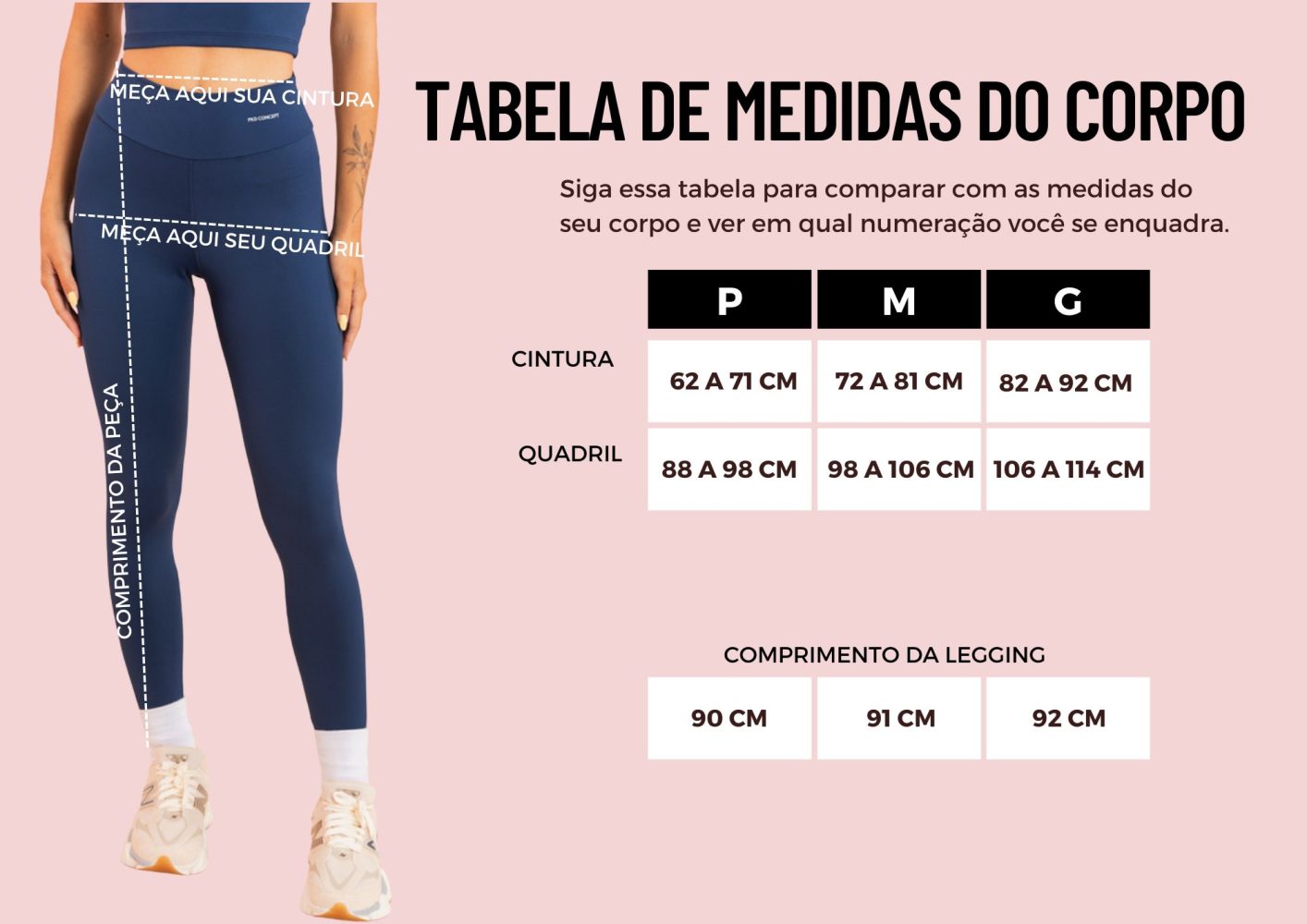 Calça legging em malha 83% poliamida e 17% elastano, com alta elasticidade e modelagem ajustada ao corpo.