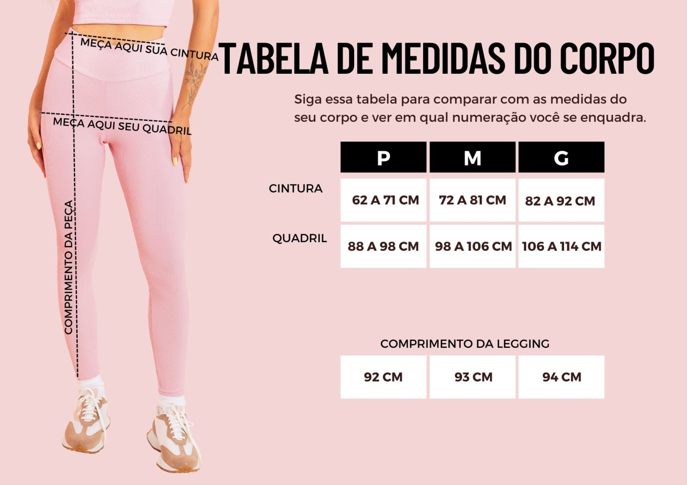 Calça Legging confeccionada em malha canelada 79% poliamida 13% poliester e 8% elastano com modelagem ajustada ao corpo.