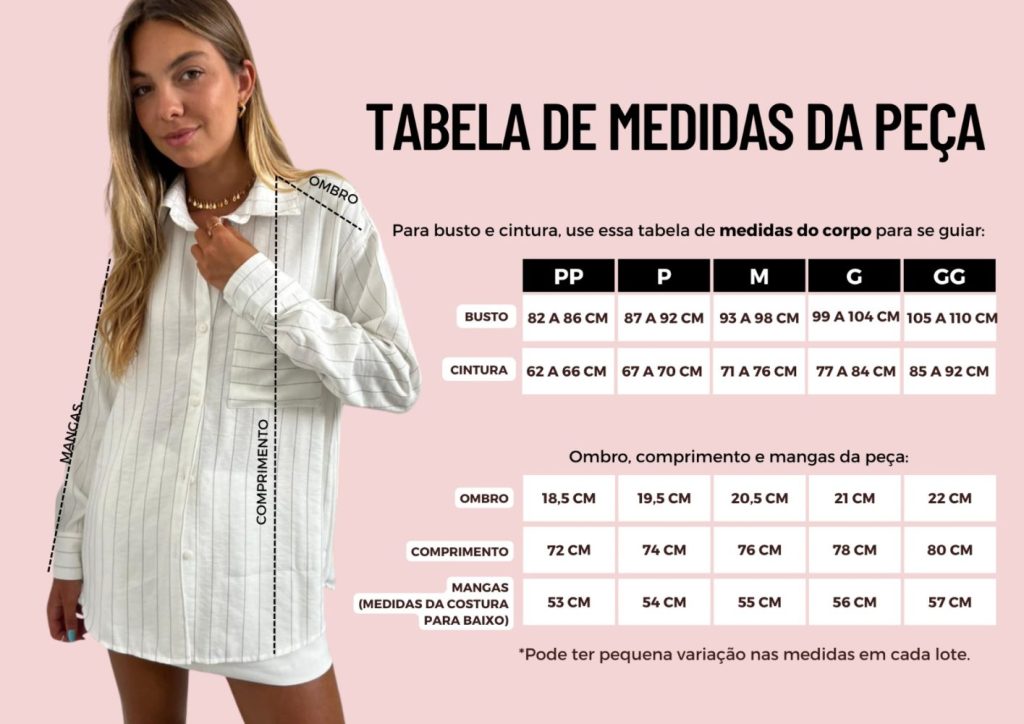A Camisa Oversized Risca de Giz Cami é aquela peça statement que eleva qualquer look. Com modelagem ampla e caimento soltinho, ela traz um visual moderno, estiloso e cheio de atitude. A estampa risca de giz adiciona um toque elegante e urbano, criando um contraste interessante entre a alfaiataria clássica e a proposta contemporânea da peça. Versátil, pode ser usada aberta ou fechada, em produções mais casuais com jeans e tênis, ou em looks mais fashion com alfaiataria, saias e acessórios marcantes. O shape oversized garante conforto e liberdade de movimento, tornando a Cami perfeita para o dia a dia sem perder o estilo. Uma camisa atual, prática e cheia de personalidade, feita para quem ama moda com informação de estilo.