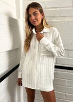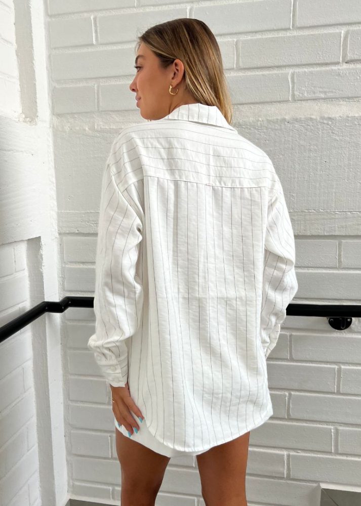 Camisa Oversized Risca de Giz Off White Cami Pkd