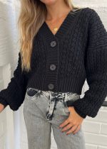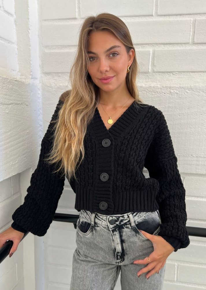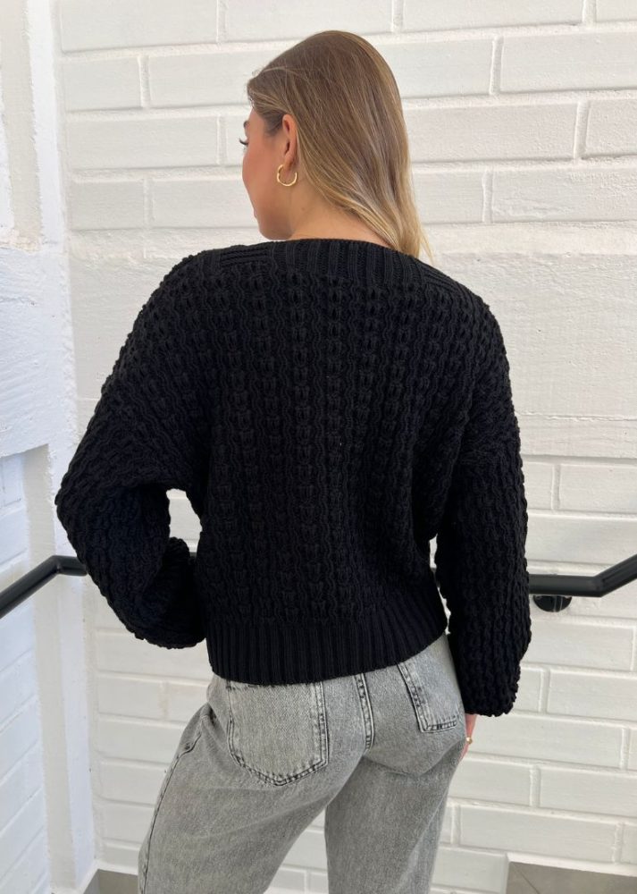 Cardigan Tricot Ponto Grosso Preto Aspen Pkd (Tam. único)