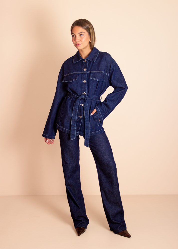 O casaco jeans Isadora é a escolha certa para quem quer personalidade e versatilidade sem abrir mão de um caimento que valoriza a silhueta. Com faixa na cintura para amarrar e detalhes de costuras aparentes por toda a peça, ele reposiciona o jeans como protagonista do guarda-roupa atual, com aquela pegada que transita do casual ao look social sem esforço.