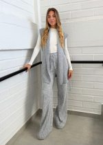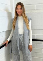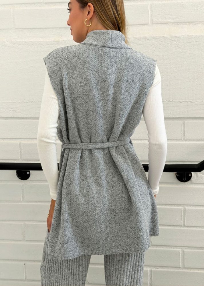 Colete Alongado Tricot com Faixa Cinza Mescla Mousse Alasca Pkd (Tam. único)