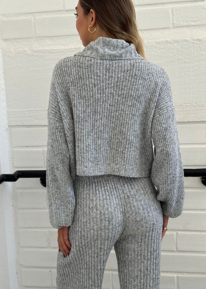 Conjunto Tricot Calça + Blusa de Gola Cinza Mescla Mousse Alasca Pkd (Tam. único)