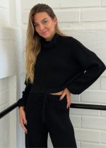 Conjunto Tricot Calça + Blusa de Gola Preto Mousse Alasca Pkd (Tam. único)