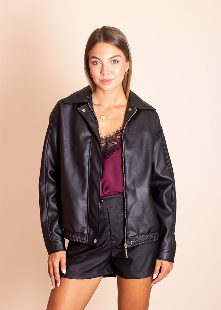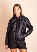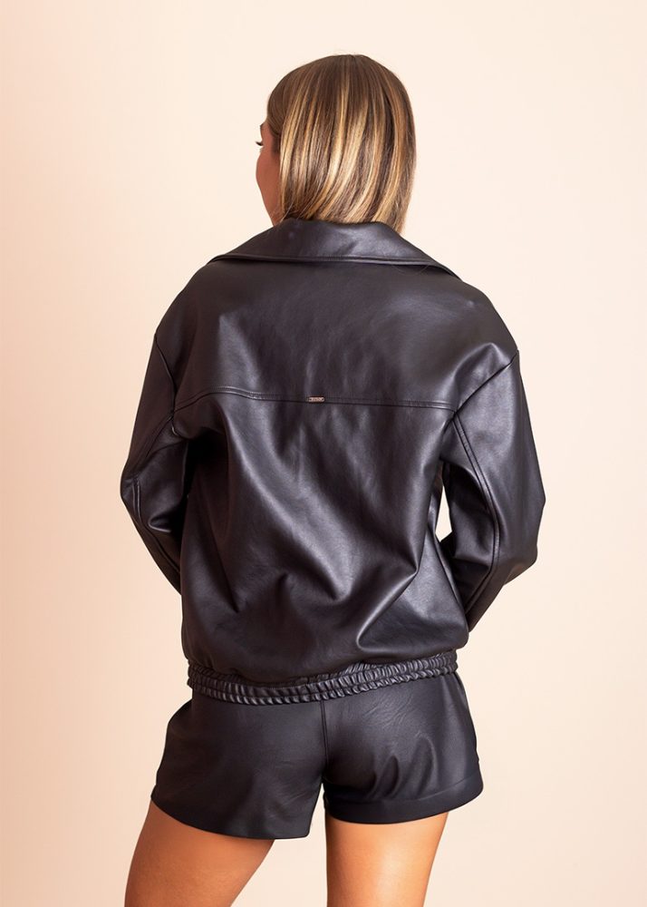 Jaqueta Couro Sintético Alongada Preta Roxy Pkd