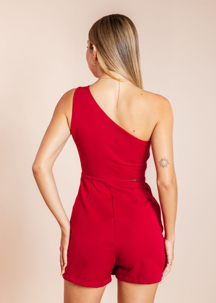Macaquinho Um Ombro Só Com Saia Frontal Vermelho Paola Pkd