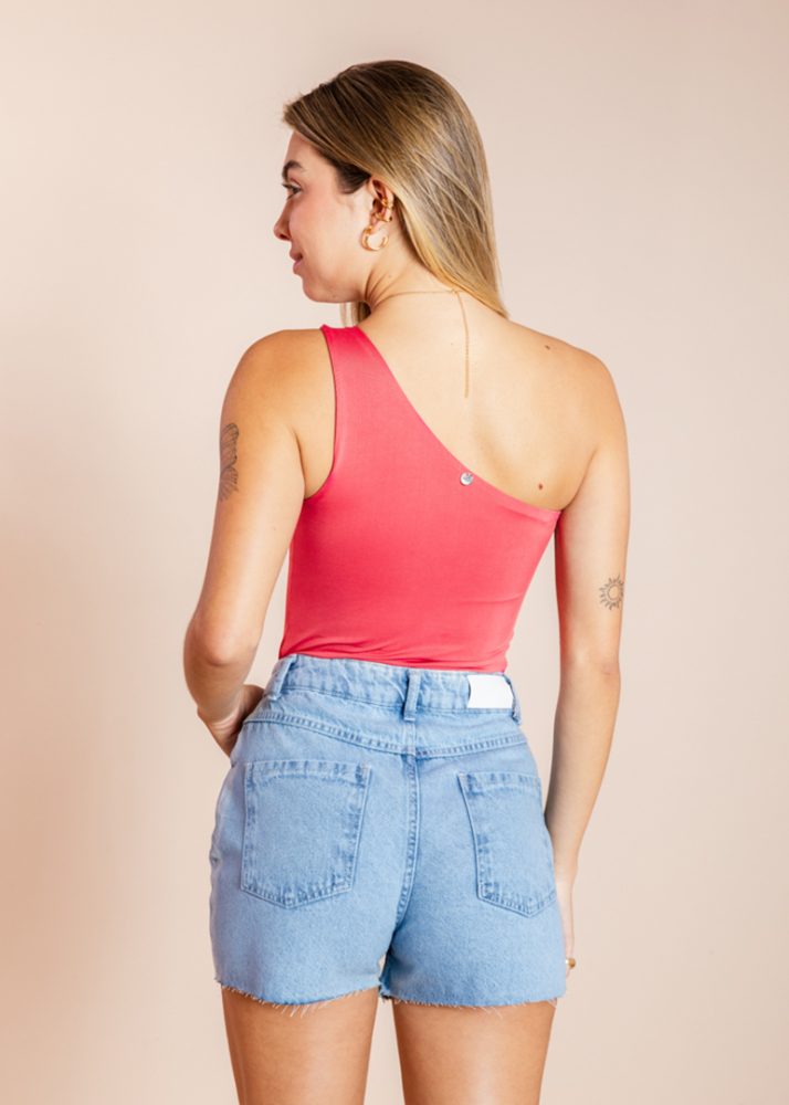 Regata um ombro só confeccionada em 96% poliester 4% elastano com textura leve. A parte da frente possui tecido duplo para garantir mais conforto e sustentação.